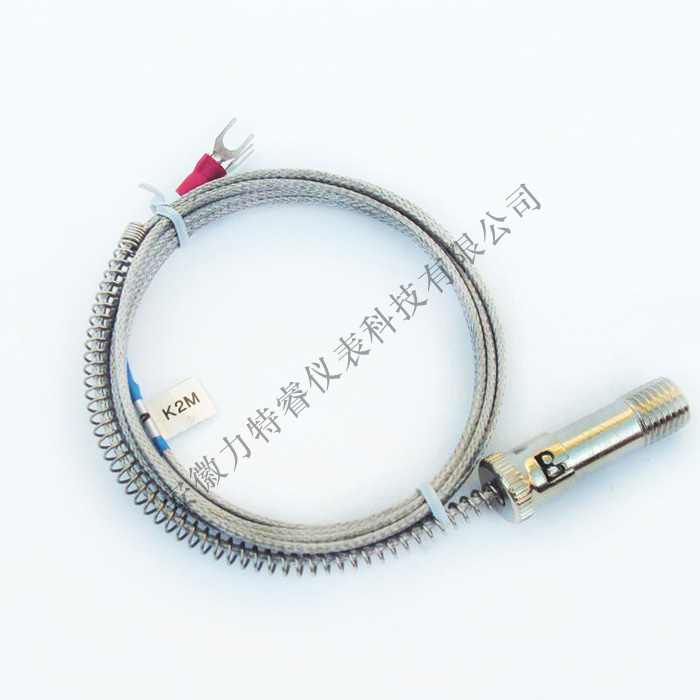 熱響應時間:≤5S WR□T-01 型壓簧固定式鎳鉻 - 銅鎳熱電偶通過壓簧將熱電偶端部與被測物的表面緊貼, 以提高測量的可靠性和準確性。壓簧式固定熱電偶與顯示儀表等配套使用,可直接測量 0~400 ℃ 范圍內的溫度。 壓簧式固定熱電偶帶有軟性延長導線,可以自由彎曲,具有熱響應時間小,使用方便等特點,適用于塑料擠 出機、輕紡、食品等工業(yè)。