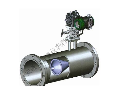 錐形流量計(jì)是在管道中心處懸掛一錐形節(jié)流件,錐形件阻礙介質(zhì)的流動(dòng),重塑流速曲線,在錐形性的下游可立即形成低壓區(qū),管道上游的正壓同經(jīng)節(jié)流件節(jié)流后的下游的負(fù)壓之間有一差壓,將正、負(fù)壓用取壓口取出,正壓口位于管道的上游,負(fù)壓口位于錐體的末端,通過測(cè)量?jī)烧咧g差壓,根據(jù)伯努力方程即可計(jì)算出管道中的流量,錐體位于管線中心,可對(duì)所測(cè)介質(zhì)的流速曲線進(jìn)行優(yōu)化,因此測(cè)量精度高,對(duì)儀表上、下游的直管段要求低。