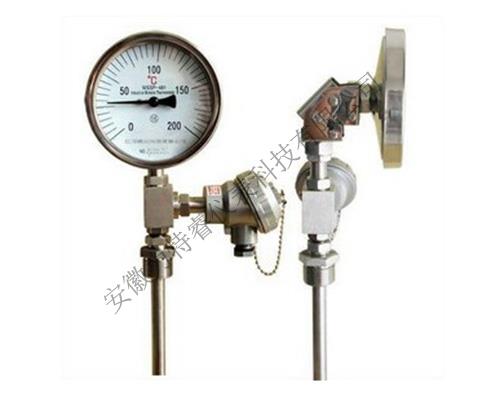 采用雙金屬溫度計與熱電偶/熱電阻一體的方式,既滿足現場測溫需求,亦滿足遠距離傳輸需求,可以直接測量各種生產過程中的-80-+500℃范圍內液體、蒸氣和氣體介質以及固體表面測溫。